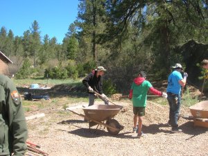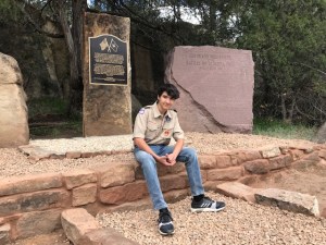 There have been many discussions between Park Superintendent Karl Cordova and Friends President, Bill Zunkel about how to improve the Battlefield monument site on NM 50. It started with the contributions of the Friends Group to seek funding to erect a stone and bronze monument honoring the brave volunteers of New Mexico who fought in the Battle of Glorieta Pass. Then discussions of ways to improve the aesthetics of the site, since it was previously surrounded by unmanaged dirt. Bill Zunkel suggested that enhancing this site with youth would be a win-win activity. Karl suggested that it would make an excellent Eagle Scout project for our local Boy Scout troop. Karl was able to talk Eagle Scout candidate Ryan Cordova